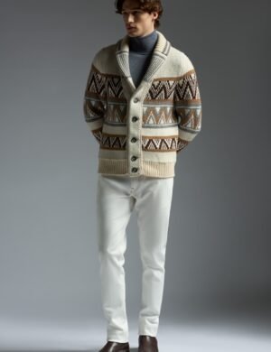 A refined take on a casual staple. this shawl collar cardigan is crafted from a luxuriously soft fabric for exceptional comfort and warmth. The distinctive shawl collar frames the neckline with relaxed elegance. while the button-front closure and ribbed trims ensure a polished fit. Horn buttons add a touch of classic sophistication. Layer it over…