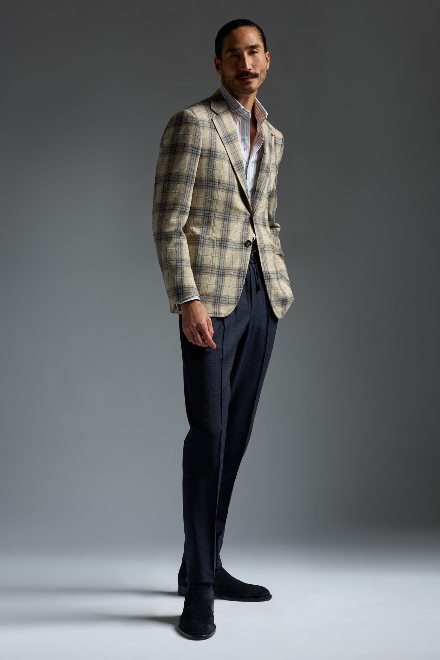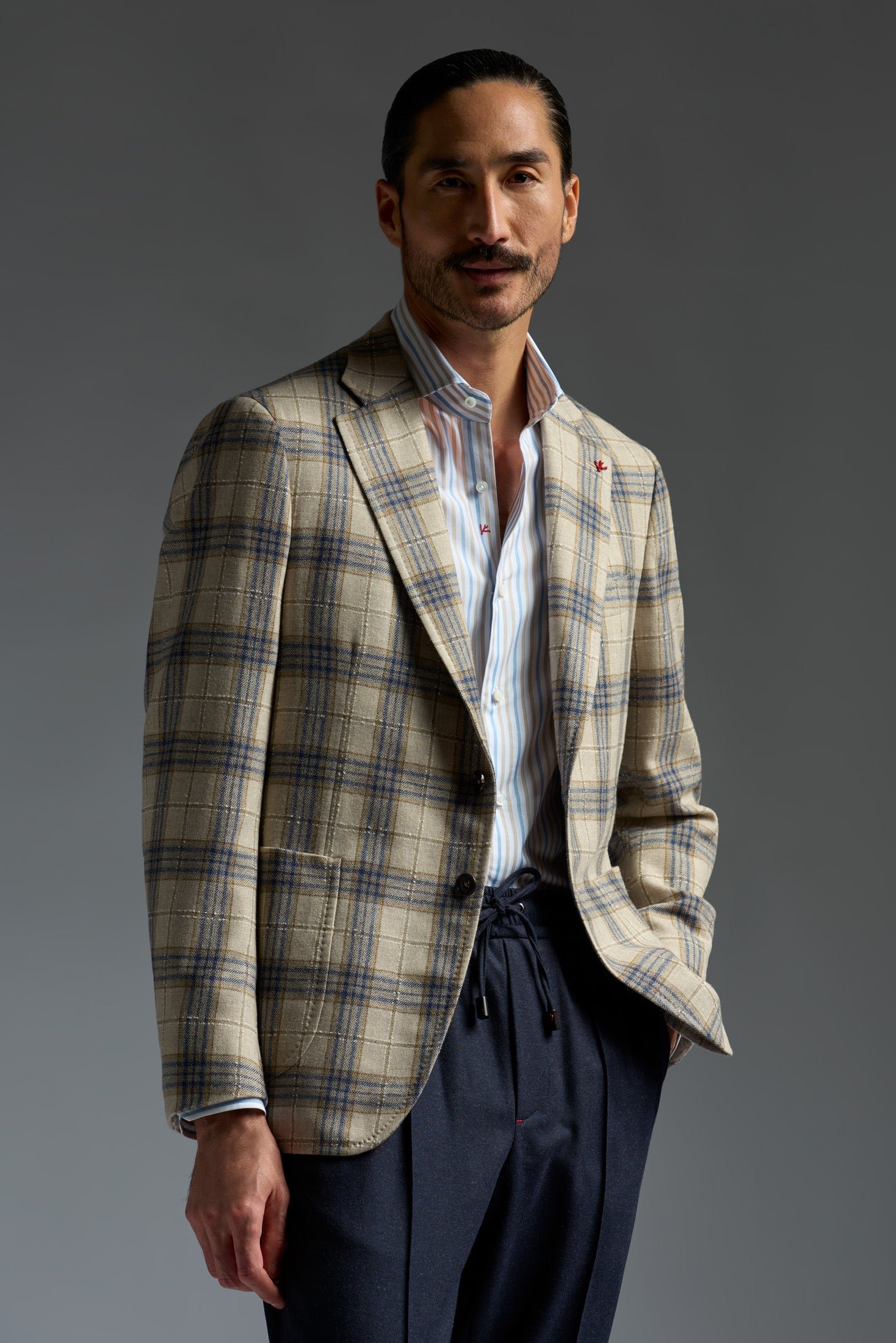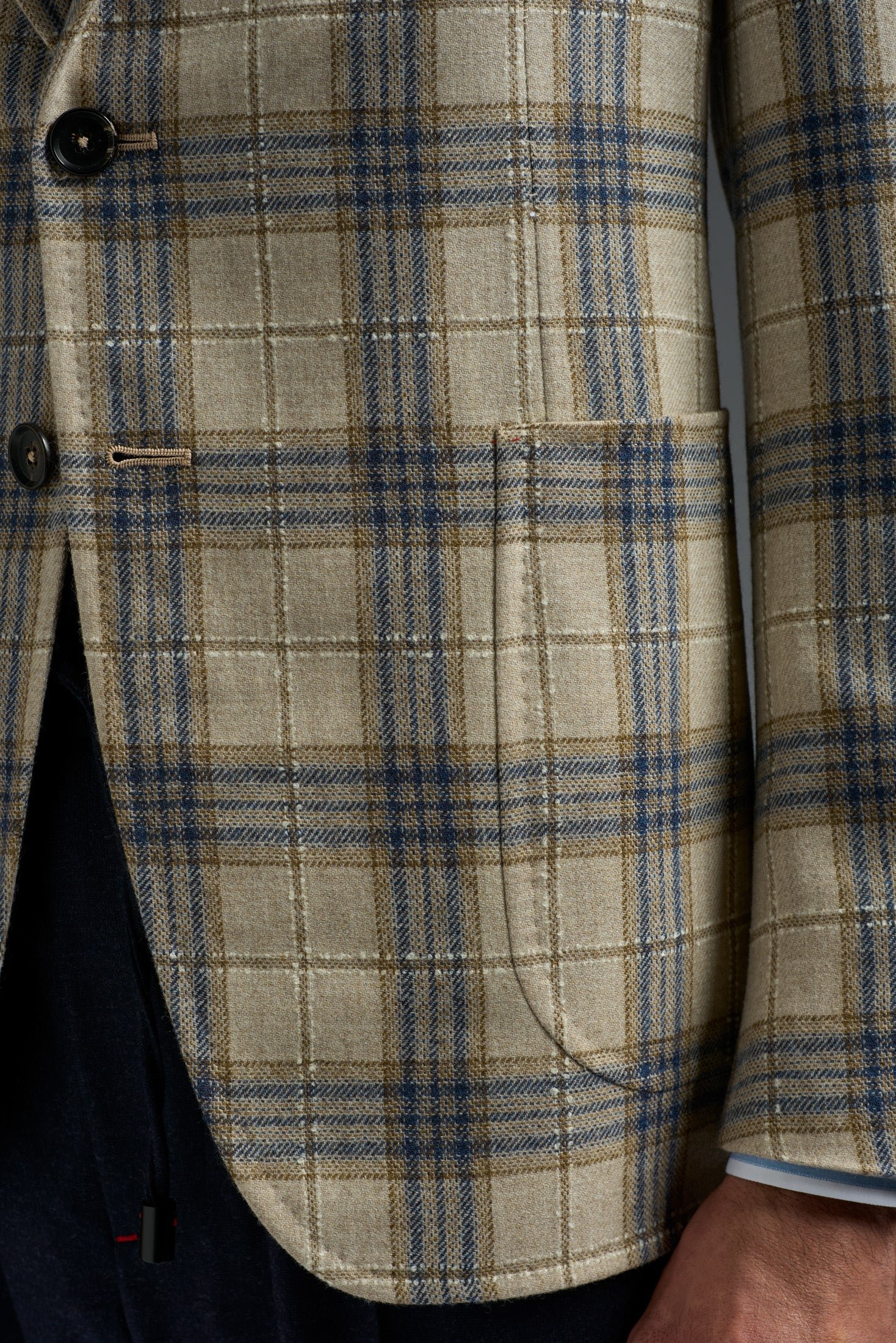 Our Capri silhouette channels the breezy. effortless elan of its island namesake. Unfussy. comfortable and versatile. it's designed to fit and feel like a casual everyday companion while radiating a classic charm and sophistication. With its fully-lined body and cropped length-it's our shortest-the Capri creates a lighter-than-air drape and second-skin silhouette. Classic Neapolitan details like the grinze-trimmed shirt shoulder silhouette and pronounced welt stitch lend the Capri an effortless old-world charm.
