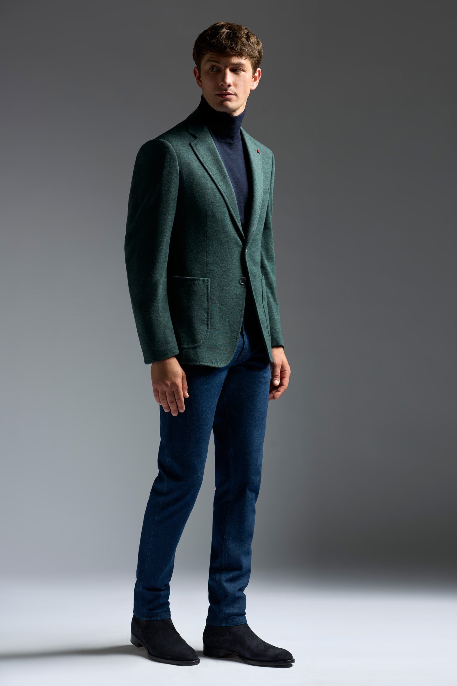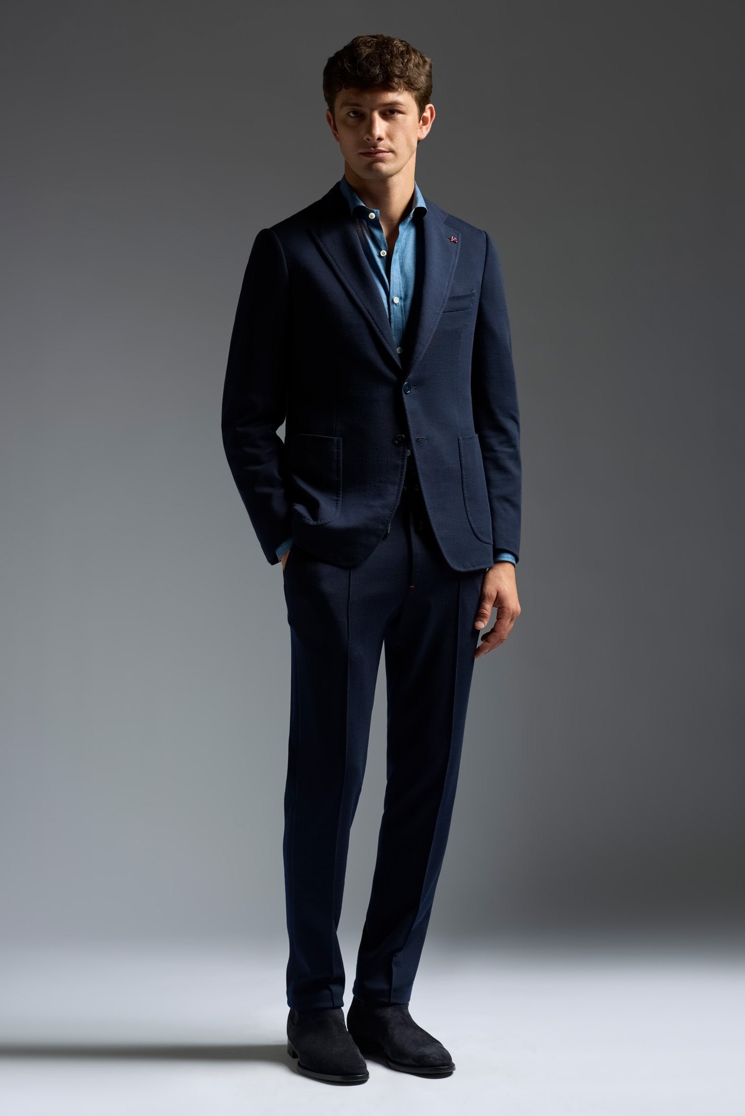 Our Capri silhouette channels the breezy. effortless elan of its island namesake. Unfussy. comfortable and versatile. it's designed to fit and feel like a casual everyday companion while radiating a classic charm and sophistication. With its fully-lined body and cropped length-it's our shortest-the Capri creates a lighter-than-air drape and second-skin silhouette. Classic Neapolitan details like the grinze-trimmed shirt shoulder silhouette and pronounced welt stitch lend the Capri an effortless old-world charm.
