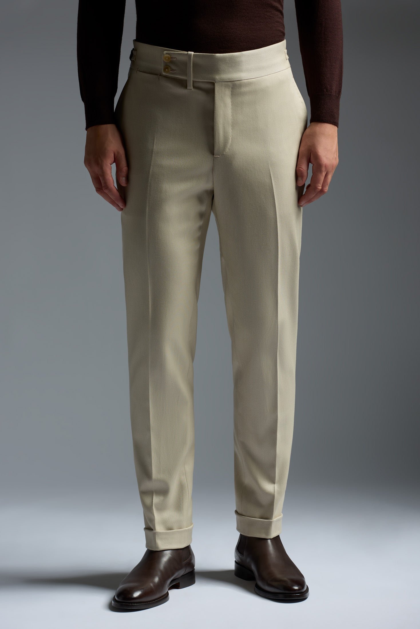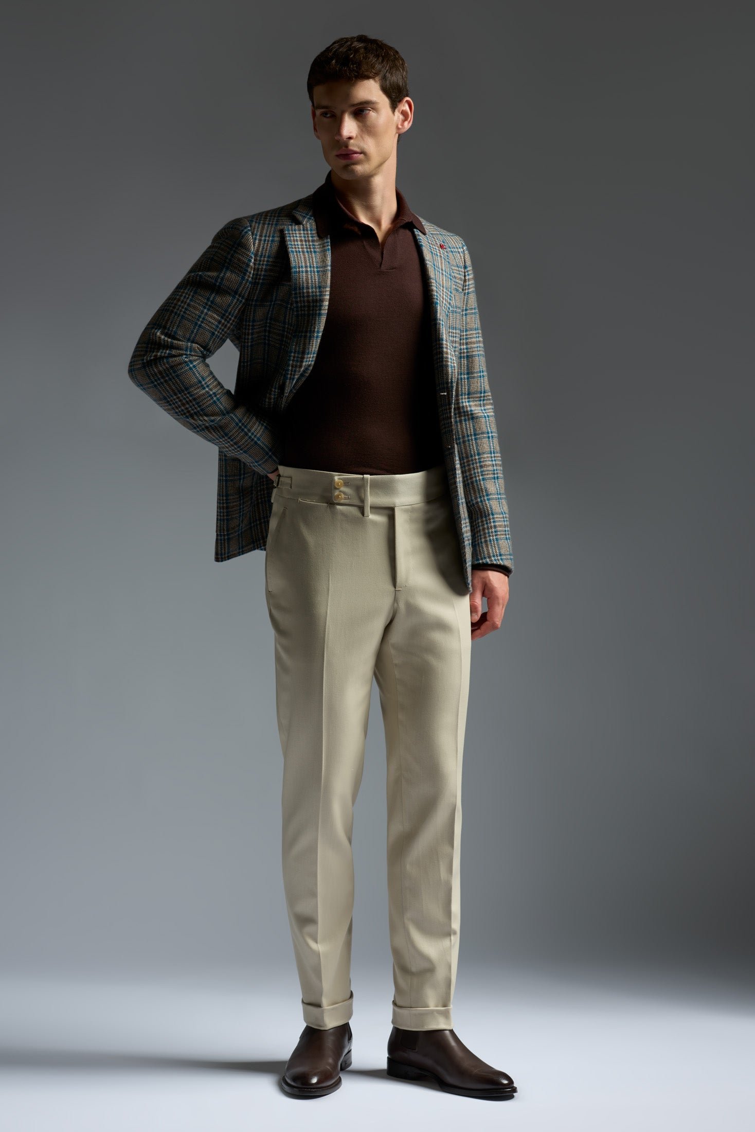 Our Casalnuovo trouser is designed to refocus the plurality of urban life into a simple. elegant silhouette. It's a smart look steeped in the Neapolitan tradition. with a medium rise. room-to-move fit and slightly tapered leg.