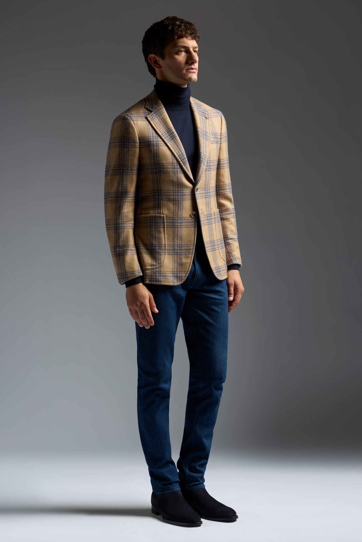 Our Capri silhouette channels the breezy. effortless elan of its island namesake. Unfussy. comfortable and versatile. it's designed to fit and feel like a casual everyday companion while radiating a classic charm and sophistication. With its fully-lined body and cropped length-it's our shortest-the Capri creates a lighter-than-air drape and second-skin silhouette. Classic Neapolitan details like the grinze-trimmed shirt shoulder silhouette and pronounced welt stitch lend the Capri an effortless old-world charm.