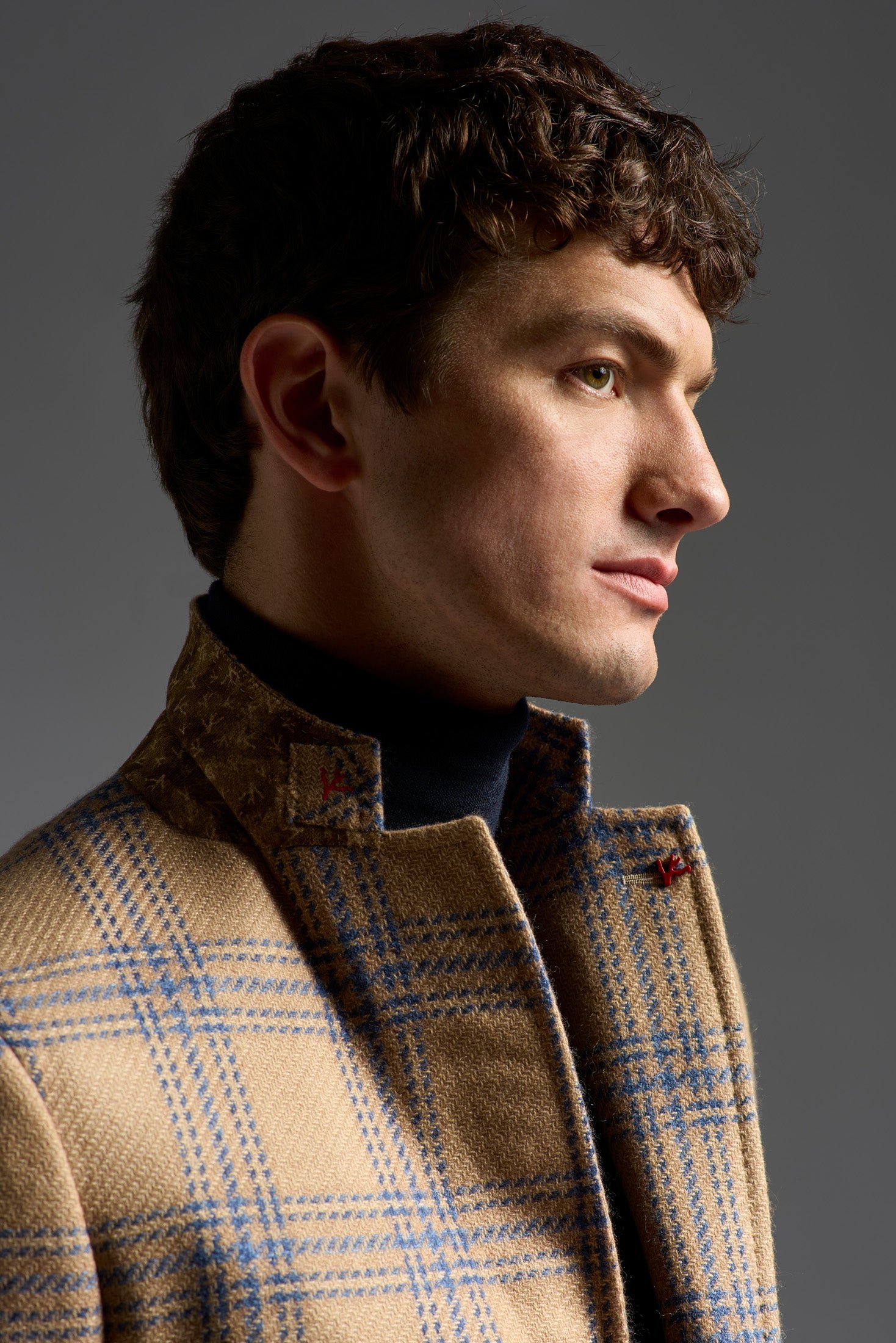 Khaki wool plaid coat