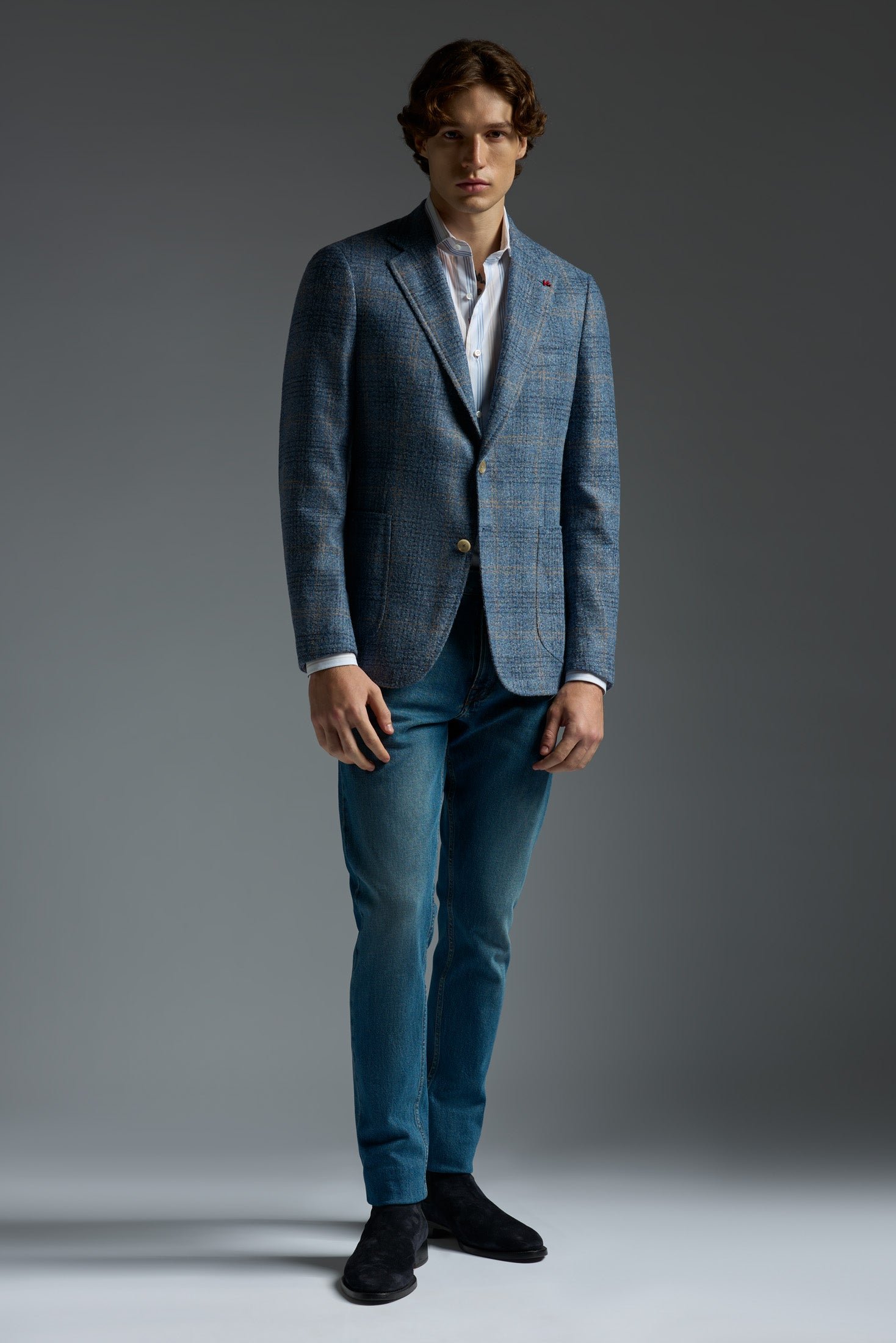 Our Capri silhouette channels the breezy. effortless elan of its island namesake. Unfussy. comfortable and versatile. it's designed to fit and feel like a casual everyday companion while radiating a classic charm and sophistication. With its fully-lined body and cropped length-it's our shortest-the Capri creates a lighter-than-air drape and second-skin silhouette. Classic Neapolitan details like the grinze-trimmed shirt shoulder silhouette and pronounced welt stitch lend the Capri an effortless old-world charm.