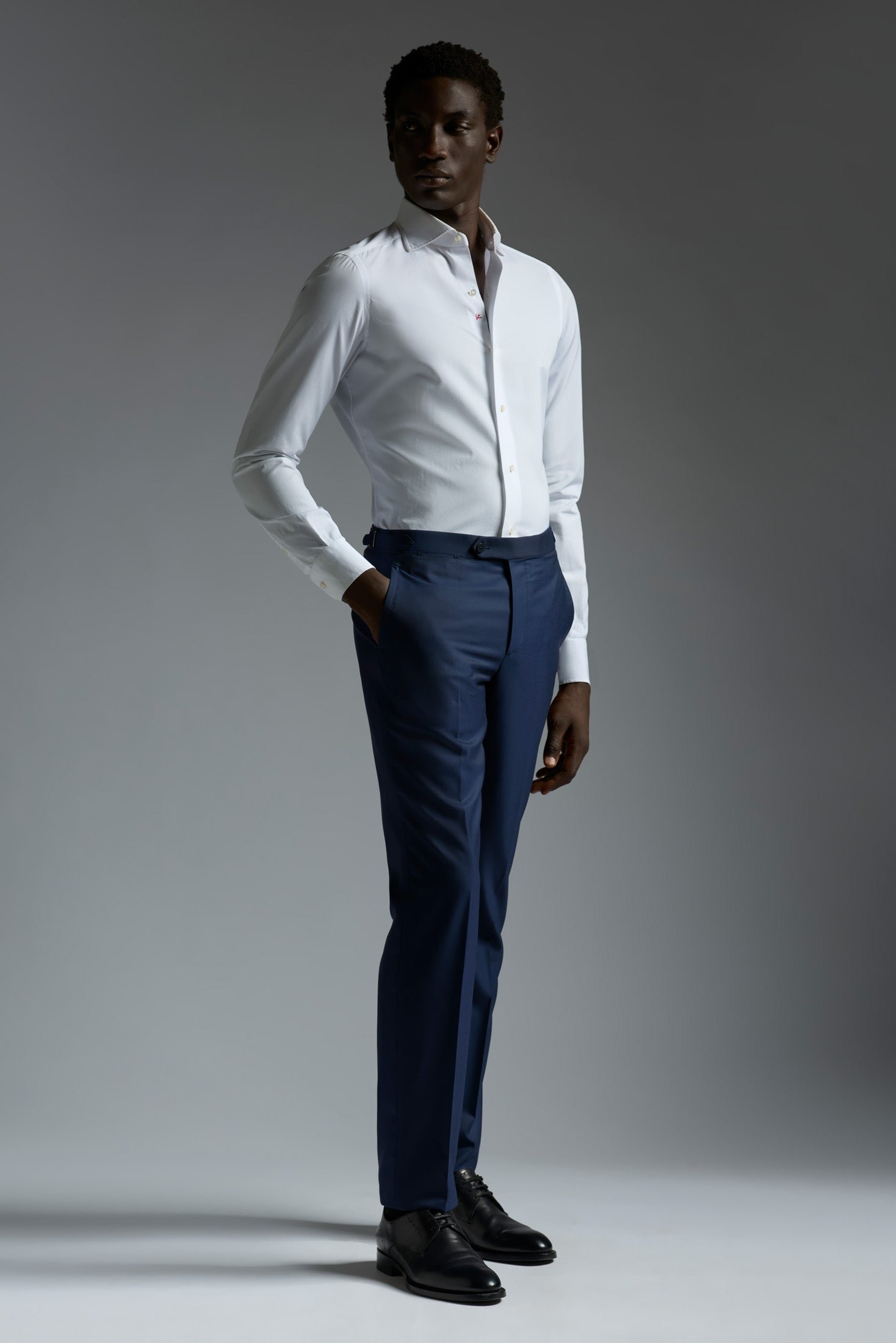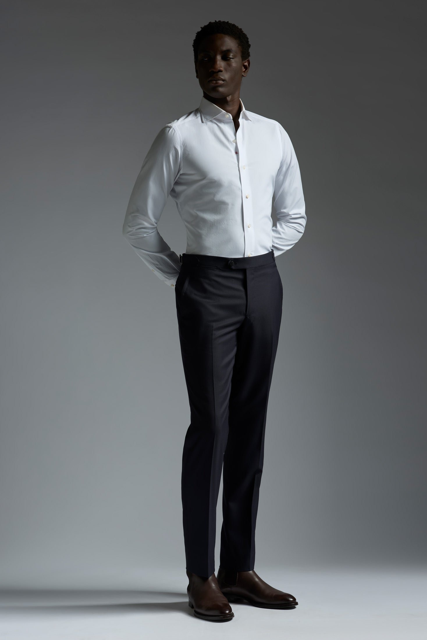 Our Sanita trouser is designed to refocus the plurality of urban life into a simple. elegant silhouette. It's a smart look steeped in the Neapolitan tradition. with a medium rise. room-to-move fit and slightly tapered leg.